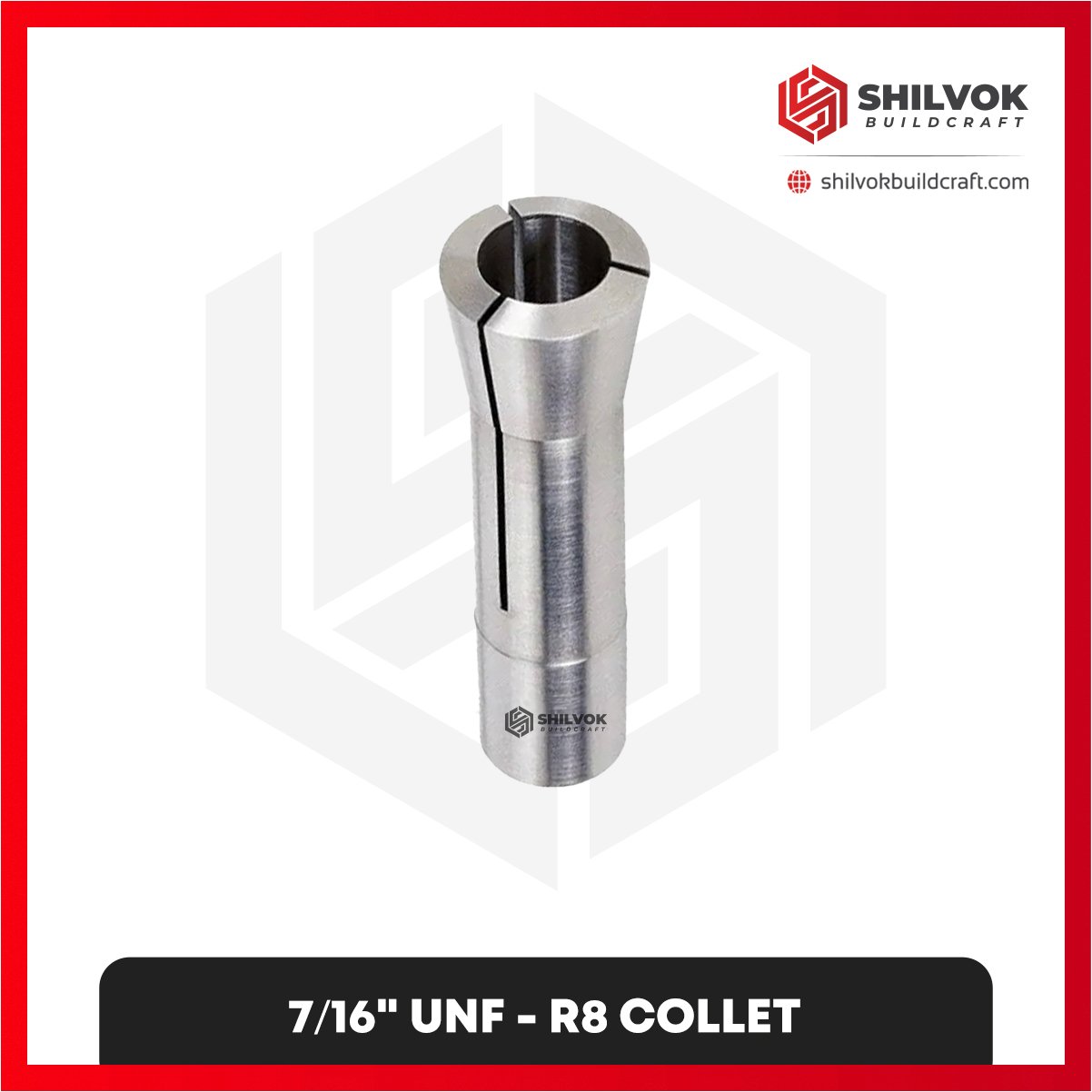 The Shilvok Buildcraft R8 Collet 7/16″ UNF delivers secure clamping for milling machines, ensuring accuracy in imperial-thread toolholding.