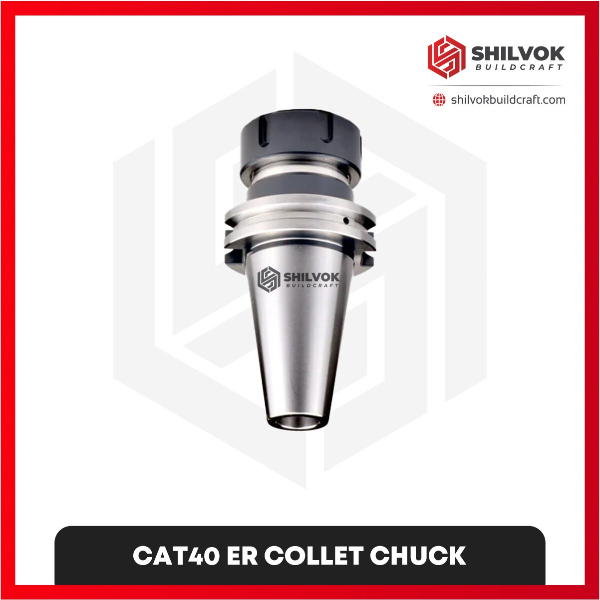 Shilvok Buildcraft CAT40 ER Collet Chuck delivers precise and stable clamping for medium to large cutting tools, ensuring optimal performance in CNC and VMC applications.
