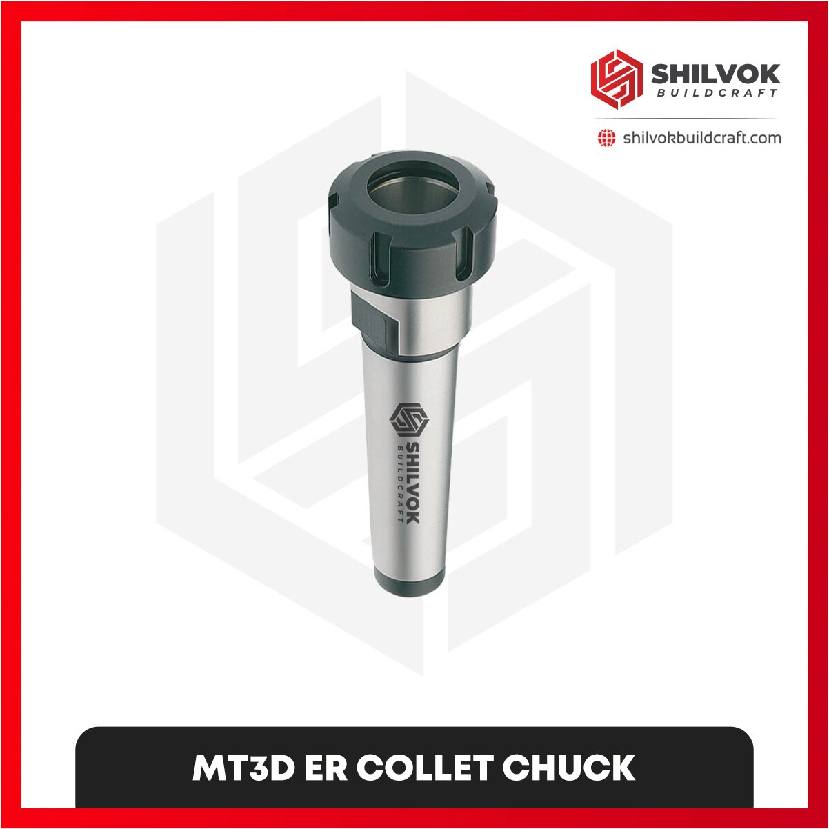 Shilvok Buildcraft MT3D ER Collet Chuck provides secure and precise clamping of tools with drawbar locking on MT3 spindles.
