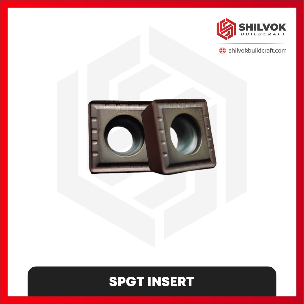 SPGT inserts from Shilvok Buildcraft combine 55° rhombic negative geometry with optimized chipbreakers for consistent chip evacuation and reduced vibration. These inserts are ideal for finishing and medium turning in steel, stainless steel, cast iron, and selected alloys. Their design ensures stable performance, precision, and high surface quality.
