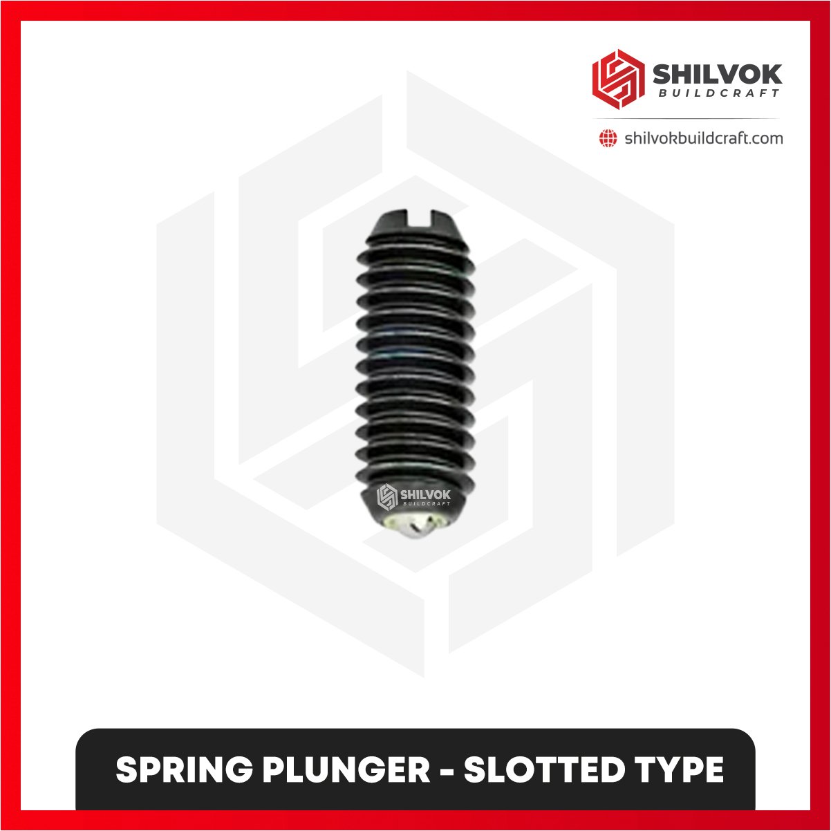 The Shilvok Buildcraft Spring Plunger Slotted Type (M5X12 to M16X24) provides precise positioning and indexing for CNC machining, milling fixtures, and modular tooling applications, ensuring reliable engagement and repeatable operation.